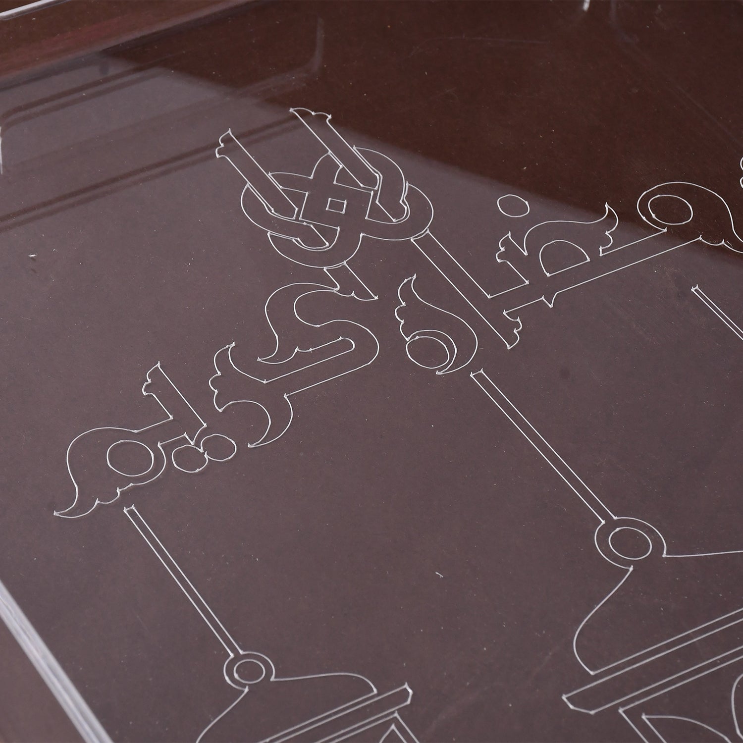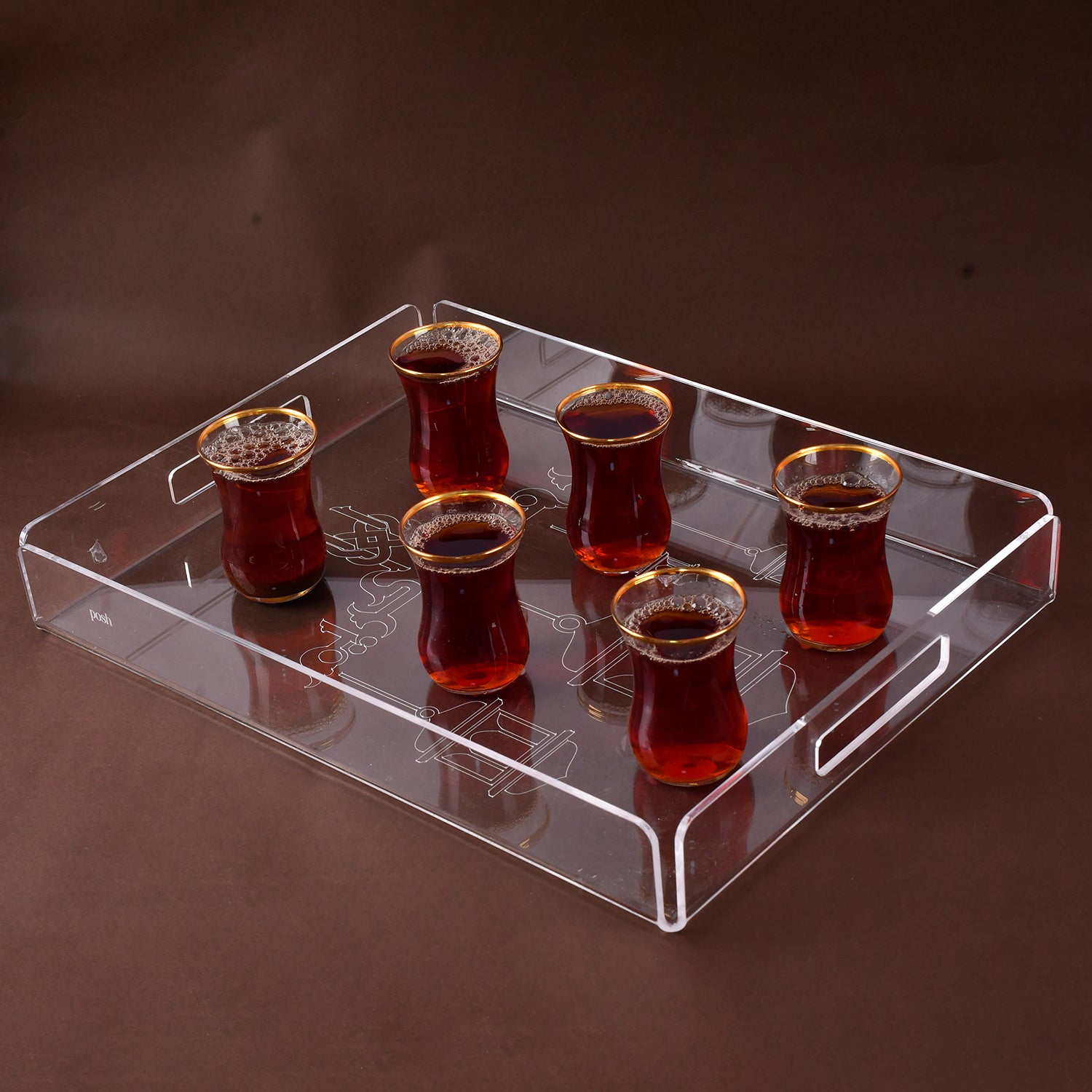 Elevate your Ramadan gatherings with this stunning large acrylic engraved transparent tray, beautifully inscribed with "رمضان كريم" (Kareem Ramadan). Measuring 30x40 cm, this elegant piece serves as a sophisticated centerpiece for dates, sweets, or refreshments during your festive celebrations. The crystal-clear acrylic showcases the intricate engraving while maintaining a modern, minimalist aesthetic that complements any décor. Perfect for entertaining guests or creating a memorable Ramadan atmosphere in your home. Please note: Cups and decorative items shown in product images are for display purposes only and are not included with your purchase.
