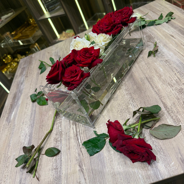 Small flowers displaying box 12 slots with sliding cover…takes up to 12 flowers